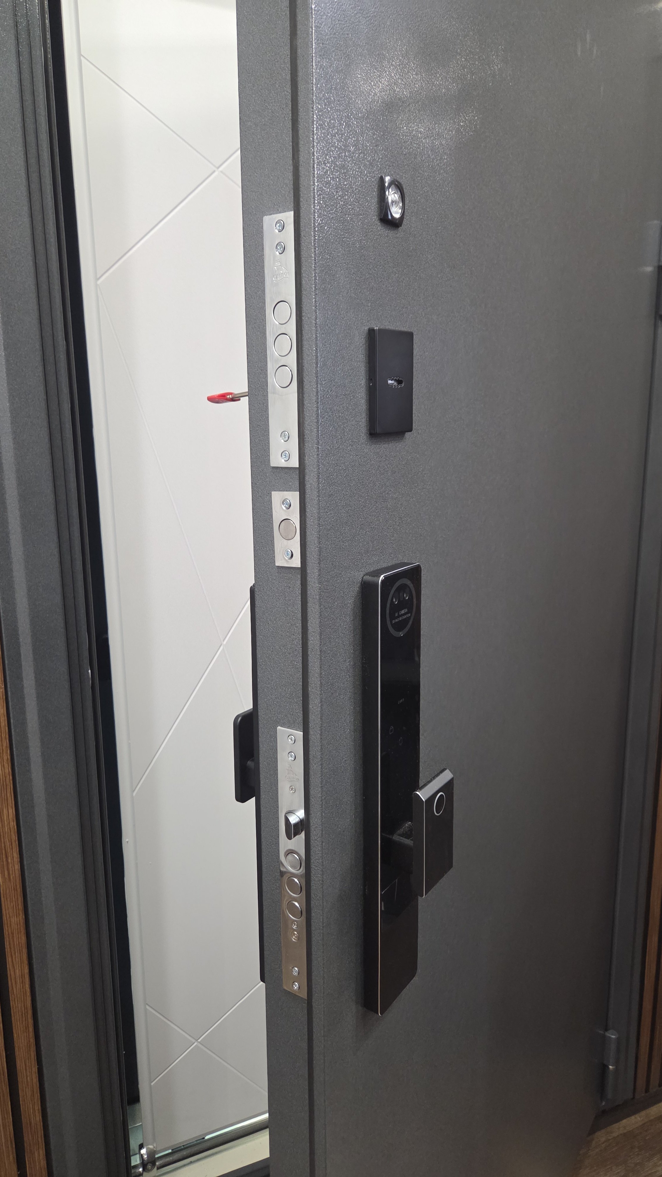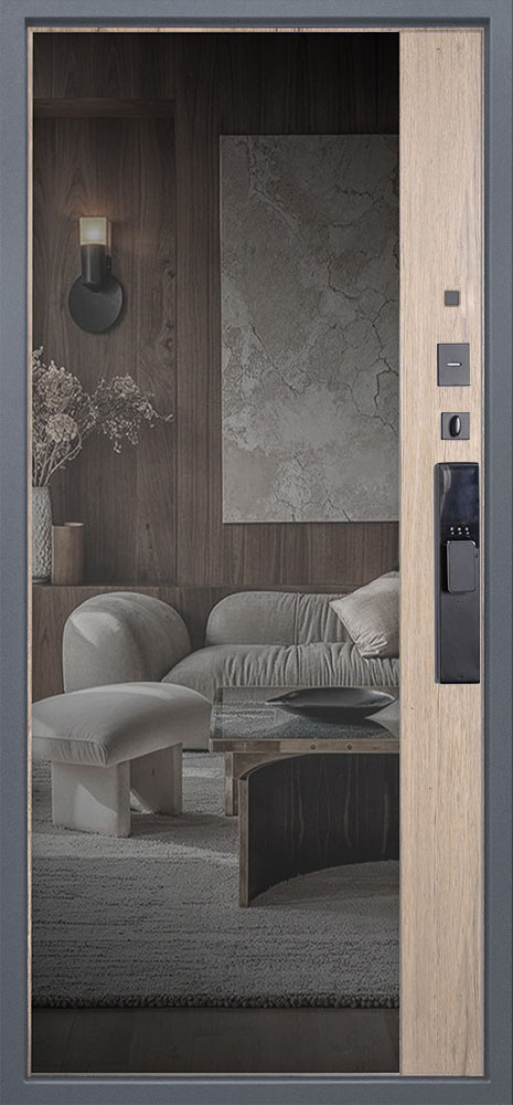 дверь АСД Беркут с биометрическим замком Y12, с зеркалом "Дуб галиф натуральный"