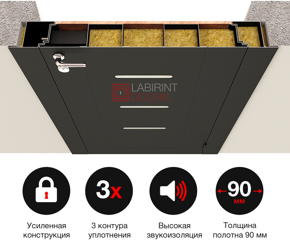 Продавец гарантирует исправную работу изделия в течении 1 года со дня приобретения при соблюдении правил эксплуатации, перевозки и хранения. Гарантия распространяется на любые недостатки двери или ее отдельных элементов, вызванные дефектами материалов или процесса производства. Гарантия не предоставляется в случаях неправильной эксплуатации, небрежного обращения, попадания внутрь конструкции двери или запирающих механизмов посторонних предметов, наличия внешних механических повреждений, в случае ремонта или модификации лицами не имеющими соотвествующей квалификации.