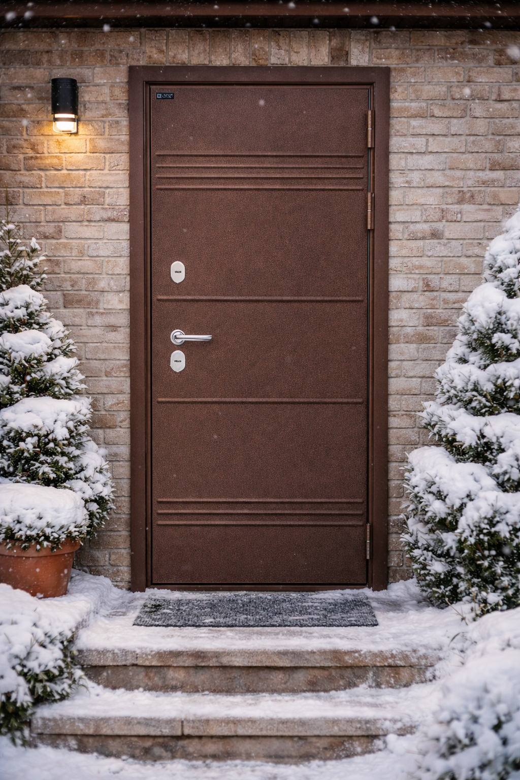 - При покупке входной двери предоставляем скидку 5% на межкомнатные двери